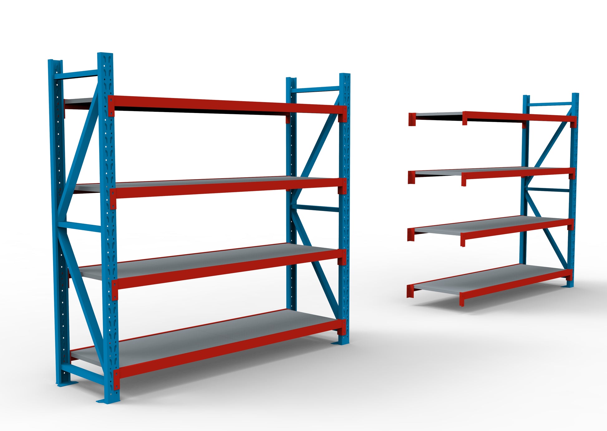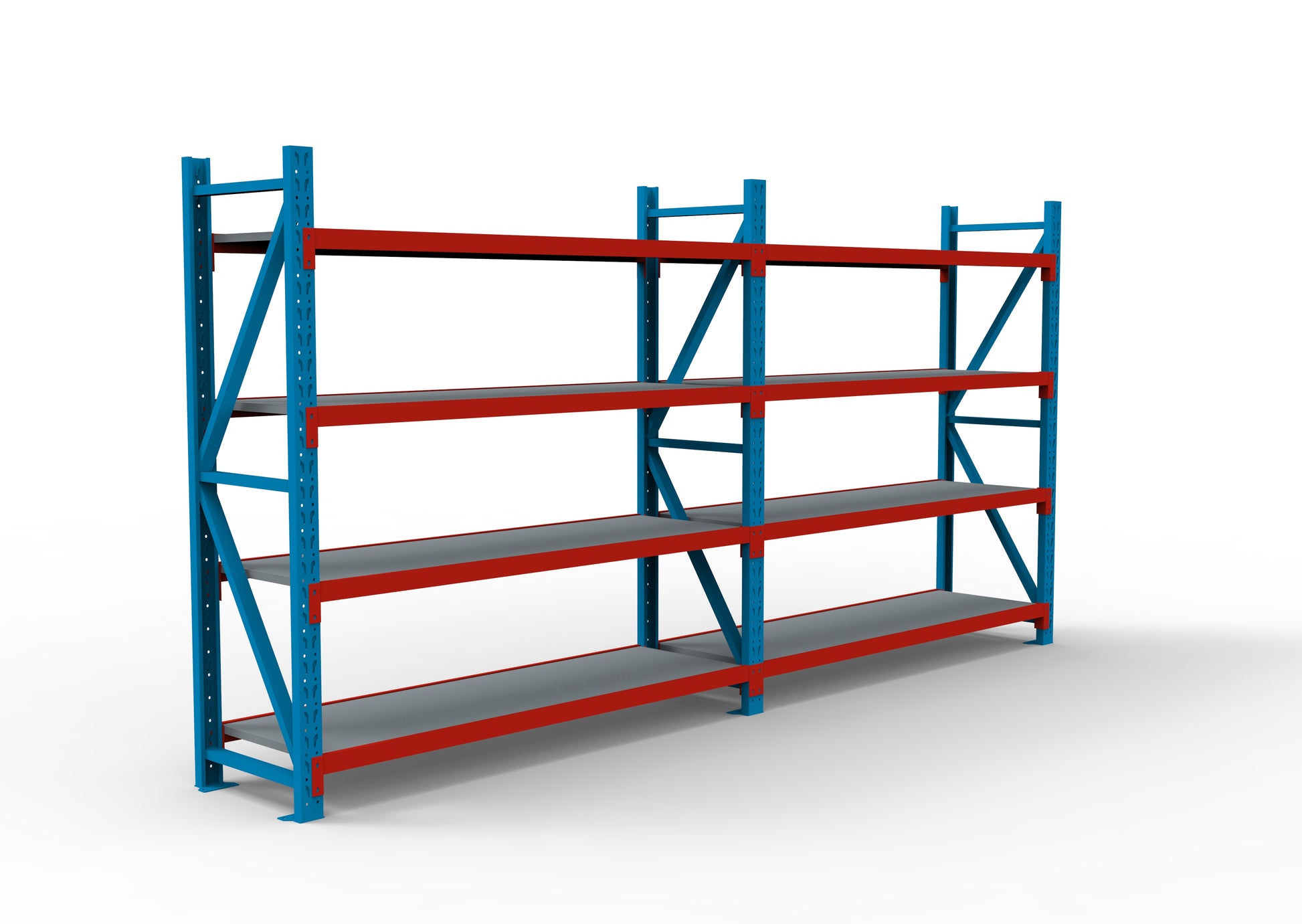 विवरण: प्रत्येक बे में 4 परतों वाली स्टील शेल्फ़ वाली ट्विन बे। अपराइट्स वेल्डेड।
