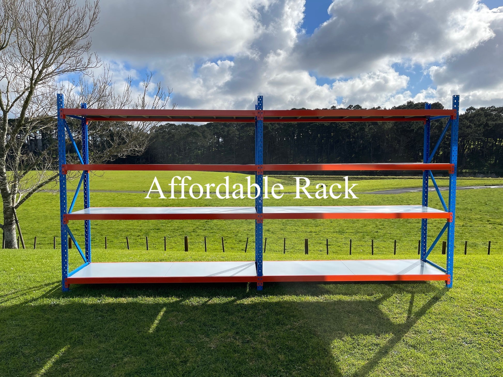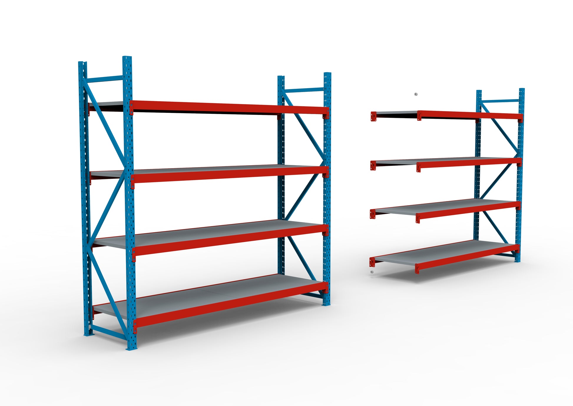 विवरण: प्रत्येक बे में 4 परतों वाली स्टील शेल्फ़ वाली ट्विन बे। अपराइट्स को असेंबली की आवश्यकता होती है।