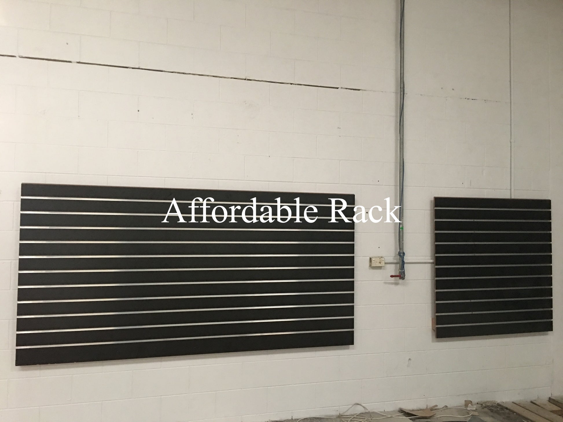 विवरण: स्लैटवॉल पैनल, 11 एल्यूमीनियम आवेषण के साथ 100 मिमी पिच
