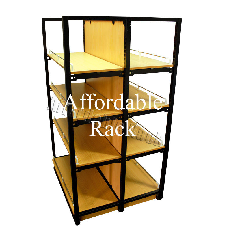 विवरण: लकड़ी के बैक बोर्ड और शेल्फ के साथ स्टील फ्रेम , दो तरफा, 2 बेस + 8 ऊपरी शेल्फ